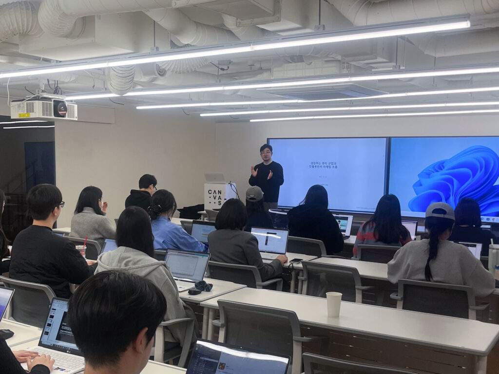 세 번째 강연은 틱톡 숏폼 광고 전문 에이전시 ‘아이기스랩’의 정상교 대표님과 함께했어요. 정 대표님은 아모레퍼시픽, LG생활건강, 아누아, 어뮤즈 등 글로벌 K-뷰티 브랜드의 틱톡 콘텐츠를 수백 건 제작해온 숏폼 전문가입니다.